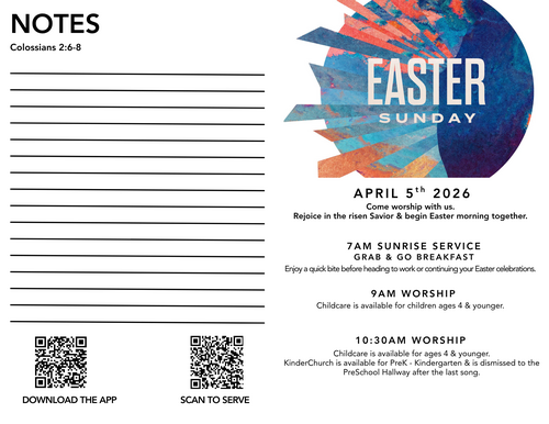 Kids start in Worship with you and then move to a space just for them to finish their morning with games, activities, Bible story and more!